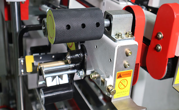 完成調(diào)試后先執(zhí)行空載運行,監(jiān)聽電機運轉(zhuǎn)聲音是否平穩(wěn)。確認無異常后投入實際紙箱測試,重點觀察膠帶貼合平整度及封口牢固度。如發(fā)現(xiàn)貼帶偏移,微調(diào)導向輪壓力螺絲直至膠帶居中。